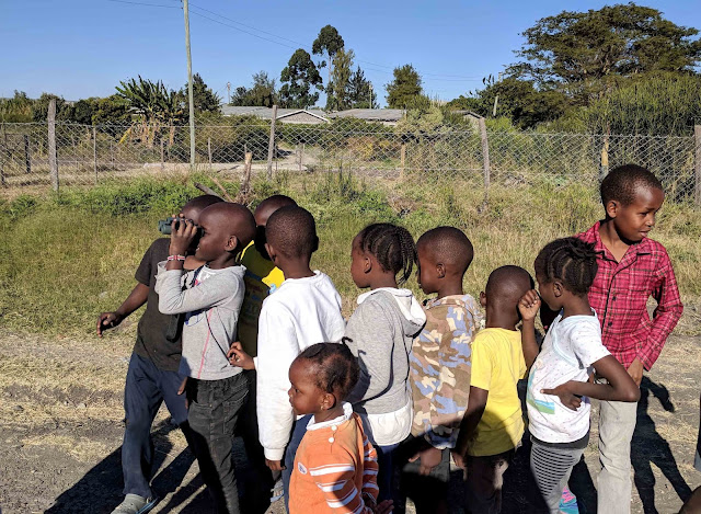 There were two children in particular that always came looking for me. Our last day at the hospital was Saturday and the children didn't have school, so they found me at 8am and asked, "When can we go look for birds?" I quizzed them on the birds I'd taught them earlier in the week and was happy to hear they were remembering some of the names. At lunch on Saturday, I had a large crowd of children wanting to look at birds with me. I passed my binoculars and watched with a smile on my face as one boy took charge. He had everyone form a line and then he stood at the front and would tell the one with the binoculars when their time was up.