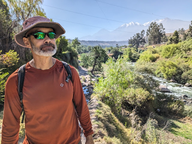 While we didn't find another access point, we did see a farm with a few alpacas and spotted the overlook along the right to the right where we looked out over the valley earlier in the day. There are varying levels of air pollution, that can make it easier to see the volcanoes on some days than others. The snow kind of looks like clouds in these photos.
