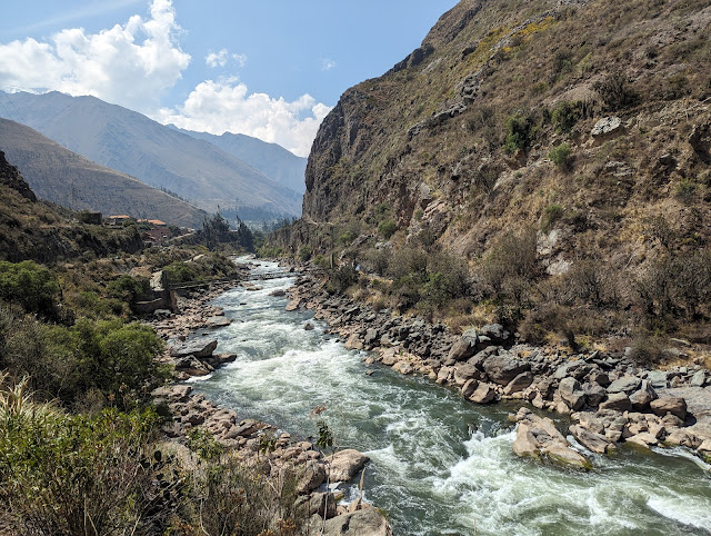 We had purchased tickets for the train from Cusco to Aguas Calientes. This was supposed to be the last day of the full train service, but when we arrived, SURPRISE! They had decided to stop the train service a day early and put us on a bus to Ollantaytambo instead. It's a beautiful drive.