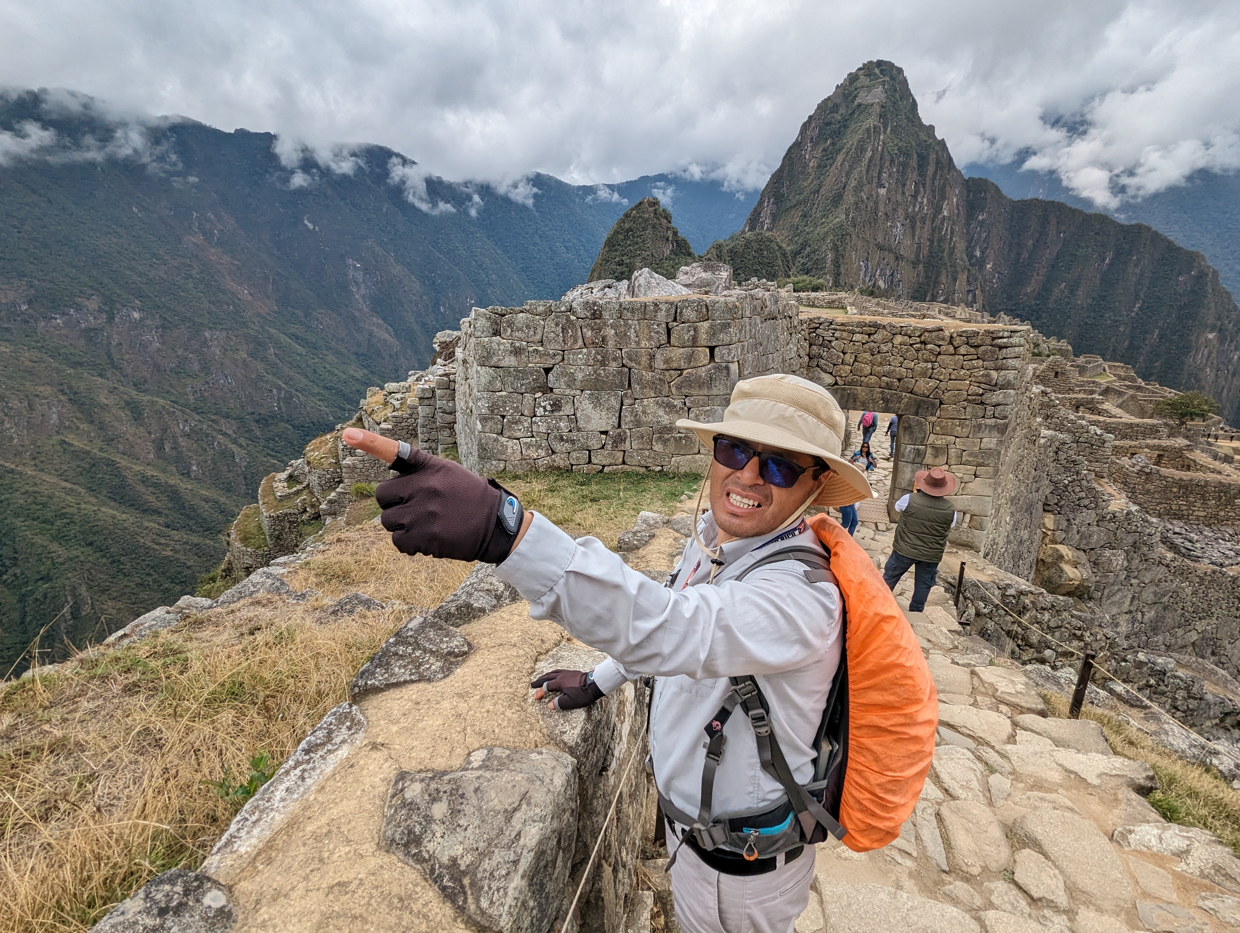 Carlos met us at our hotel and walked with us to the bus line at 9am for our 10am entry tickets. After a beautiful 30-minute bus ride on a switchback road along the side of the mountain, we reached the top, and paid 2 soles each to use the one and only restroom. Once you enter the ruins, you'll have to leave to use the restroom and cannot reenter! It's so beautiful here! An Andean Guan met us at the start of the trail.